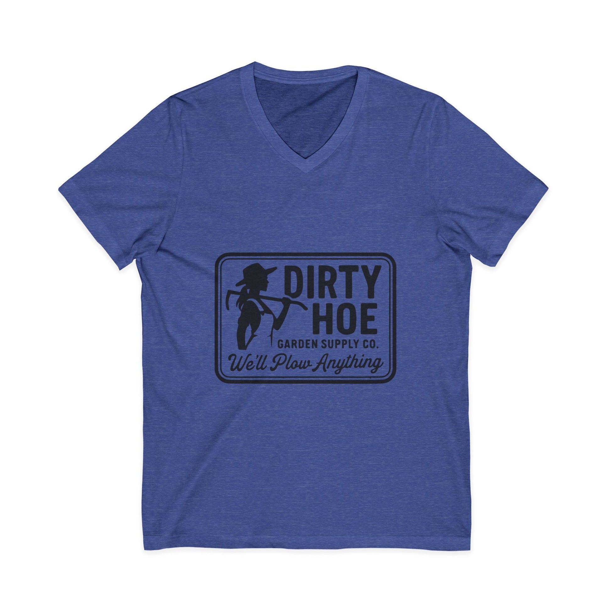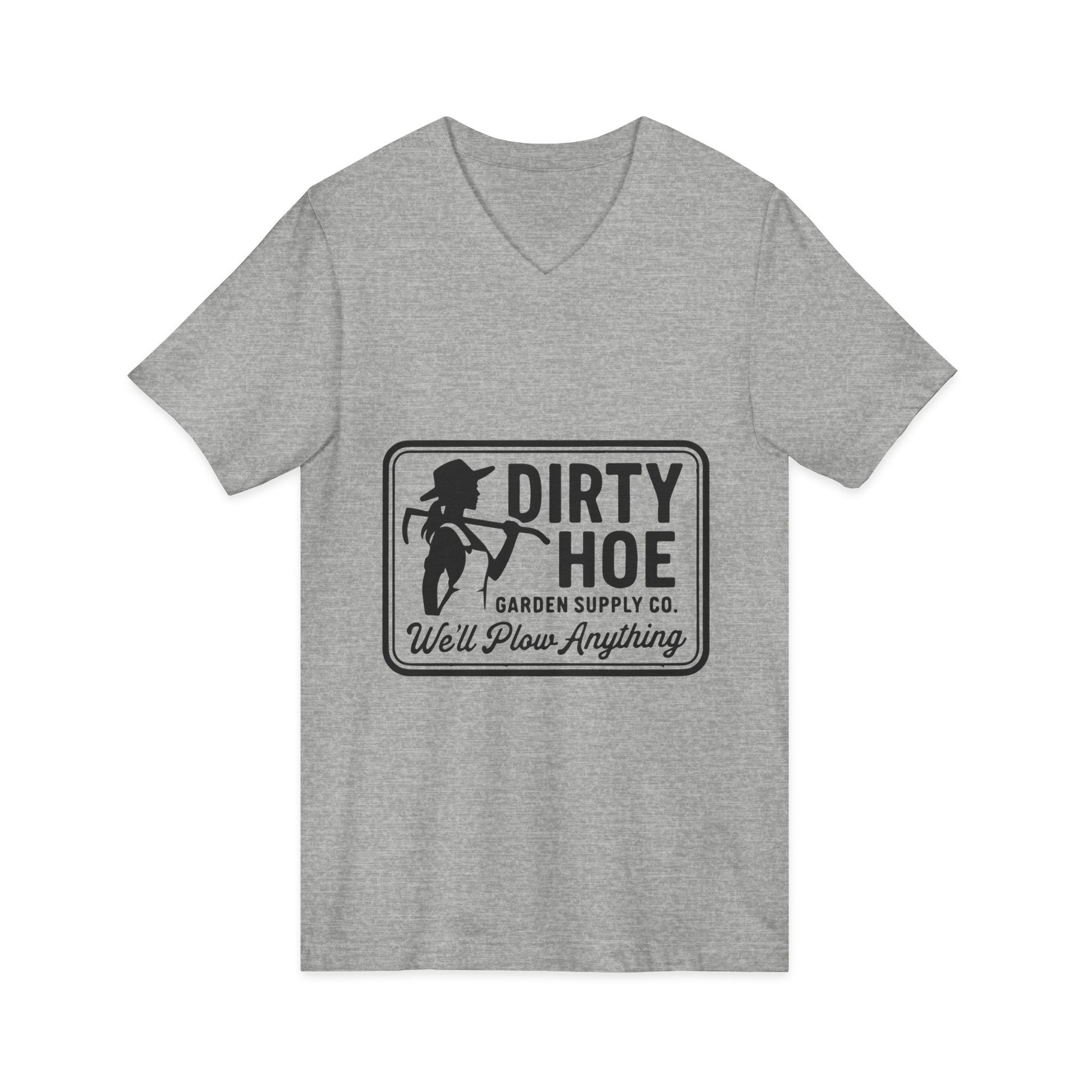 You know the drill: hard work, good soil, and a great sense of humor. This shirt is for the dedicated gardener who isn't afraid to get down and dirty—literally. Featuring the vintage-style logo, "Dirty Hoe Garden Supply Co. — We'll Plow Anything," this V-neck is an instant favorite for plant swaps, farmers' markets, or just hauling compost. Lightweight and soft, it’s the perfect uniform for anyone who believes the best tools are a little rough around the edges. Wear it proudly and let the neighborhood know who the real boss is.