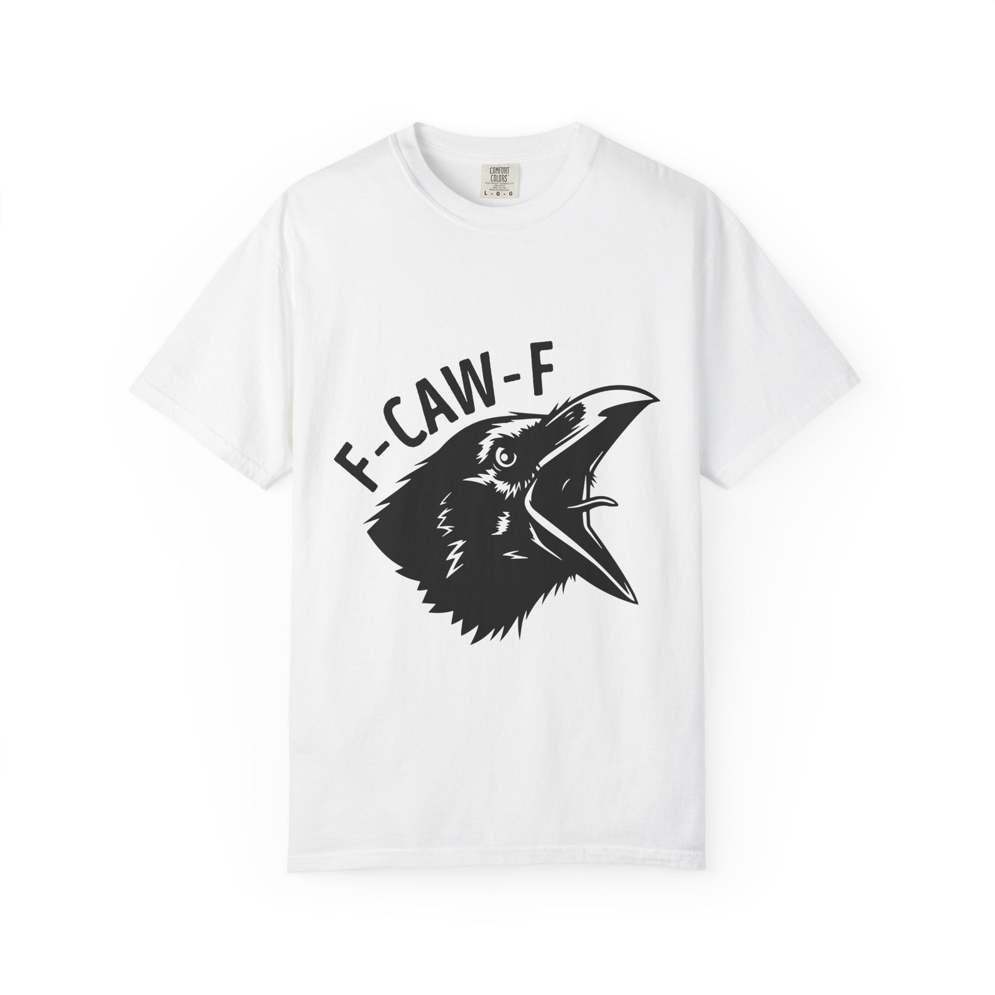 F-CAW-F Crow Head T-shirt | Raven Illustration, Bold Text